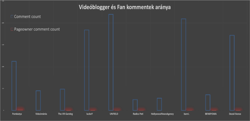 A celeb és rajongói között ténylegesen létrejövő párbeszéd (2. alkérdés) nem alakul ki: a nyilvános oldal által generált kommentek száma a rajongói kommentek mennyiségéhez képest elenyésző (5. ábra), így a megvalósuló interakciók jellegére ebben az értelemben a „régi médiában” tapasztalható, elsősorban a celeb által gyakorolt önreprezentációs dinamika jellemző.