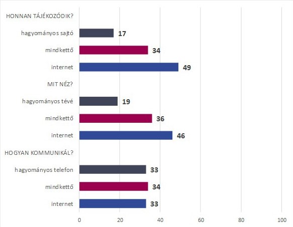 A kutatás megállapította, hogy a húsz év alattiak esetében gyorsabb volt a hagyományos tv és rádió térvesztése az internethasználat miatt. „A tizenévesek között tízből heten a világhálóról tájékozódnak a hagyományos tévék, rádiók, újságok helyett – tizenháromból mindössze egy fiatal mondta, hogy többet tévézik, mint amennyit internetezik –, és tízből nyolcan az interneten néznek filmeket, videókat vagy sorozatokat” –áll a kutatás beszámolójában (NMHH 2020).