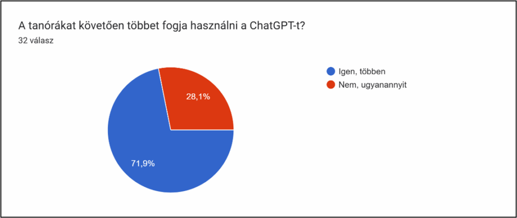 Értékelő kérdőív: a tanórákat követően többet fogják-e használni a ChatGPT-t