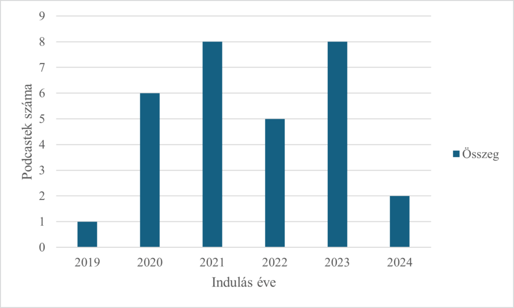 Az elemzett podcastek indulási éve (saját szerkesztés)